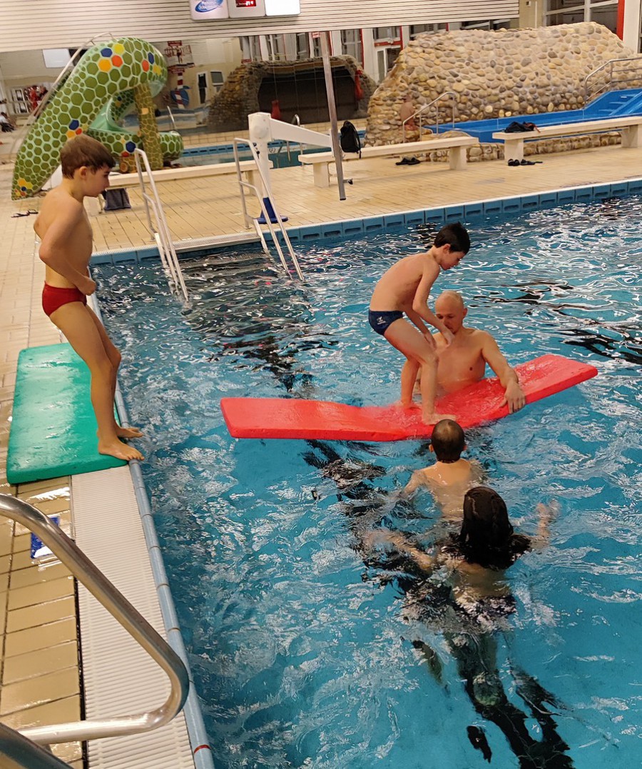 Nach der Pflicht folgte dann die Kür, es ging mit den Eltern ins Wasser des Hallenbades und in gemischten Teams ging es um Punkte. Mirja Wirth hatte sich einen besonderen Parcours mit springen, tauchen, balancieren und überlegen ausgedacht. Alle (ok, fast Alle) machten mit und hatten ihren Spass.