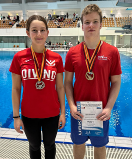 So konnten Alexandra und Malte zusammen 1 Gold, 2 Silber- und eine Bronzemedaille gewinnen und Rayan Obbad in einem sehr stark besetzten B-Jugendjahrgang 2010 einen hervorragenden 6. Platz auf dem 1m-Brett erreichen.