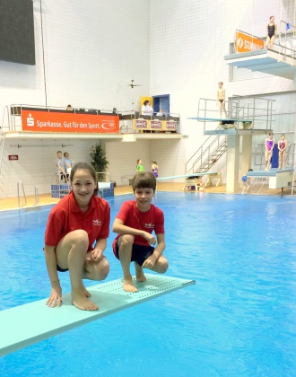 Christel trat auf dem 1m-Brett an, auch sie mit einem Schwierigkeitsgrad, der sich in der DSV-Leistungsklasse nicht verstecken musste, aber auch sie hatte noch Probleme die Sprünge alle sicher ins Wasser zu bringen. In der Pflicht pendelte sie noch ganz stark zwischen Platz 5 und 9, aber mit dem letzten Pflichtsprung, der Rückwärtsschraube begannen die Schwierigkeiten, der zweite Schraubensprung zum Abschluss der Kür ergab sogar eine Nullwertung und damit insgesamt nur den 14.Platz im Jahrgang 2003.