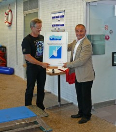 Und als Vertreter des Hausherrn, des Institutes für Sportwissenschaften der Johannes Gutenberg Universität, dankte Professor Dr. Dr. Perikles Simon Gerd Neuburger auch für seine Ausbildungstätigkeit am Institut und sagte eine Unterstützung der Ausbauwünsche des Bades im Rahmen der anstehenden Renovierung mit einer Wasserlongen- und einer Bubbleanlage zu, damit der Leistungssport wieder verstärkt an das Sportinstitut gezogen werden kann und die Talente in dieser Region nicht verloren gehen.