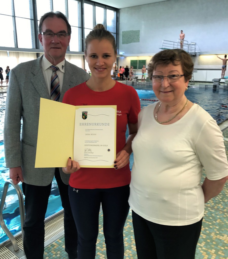 Goldene Leistungsnadel des SWSV für Jana Boog Eine lange Wasserspringerlaufbahn wird geehrt