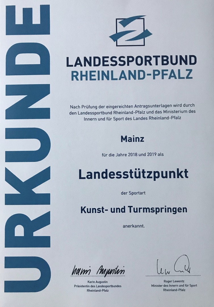 LSB ernennt Mainz und den Mainzer SV zum Landesstützpunkt im Kunst- und Turmspringen