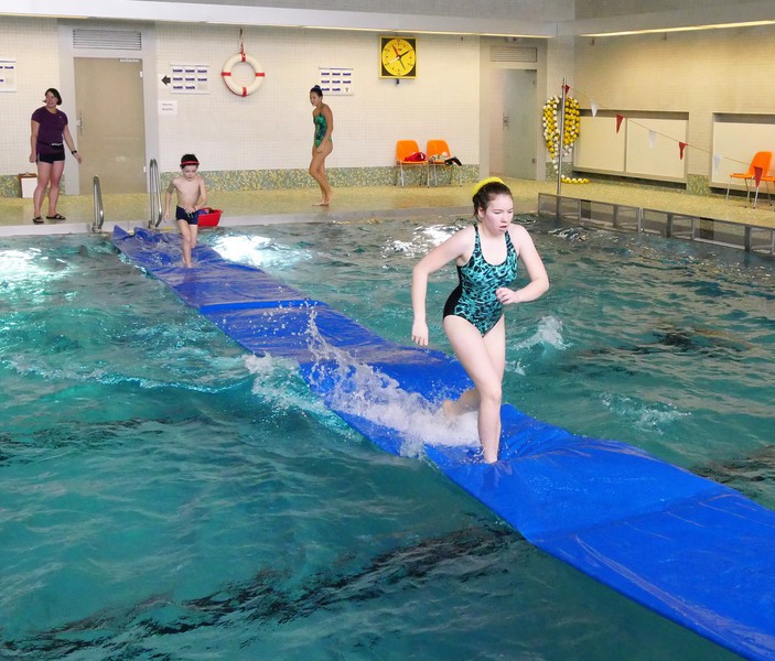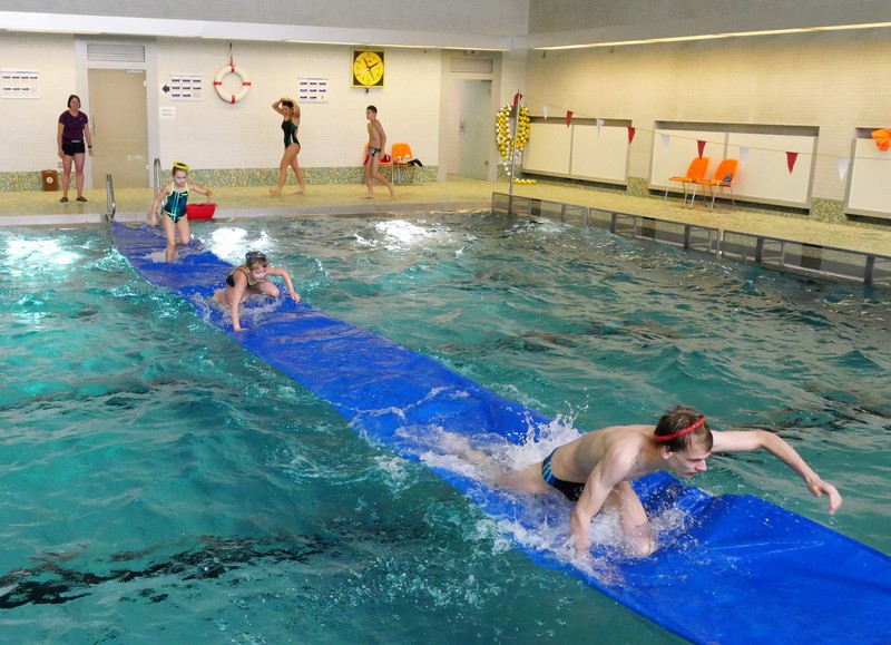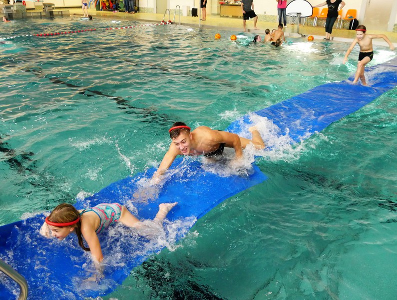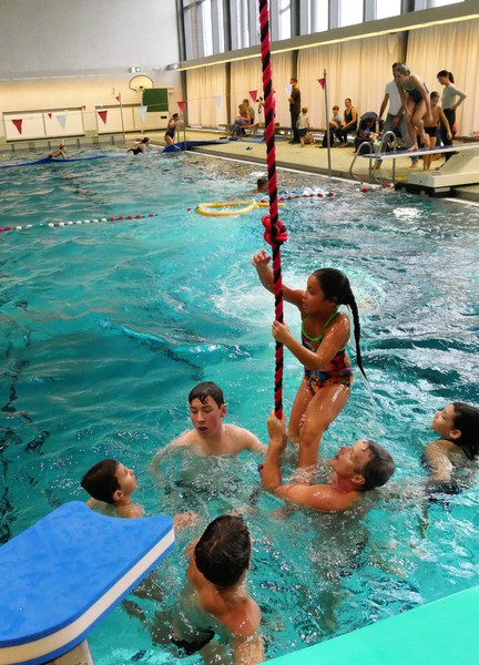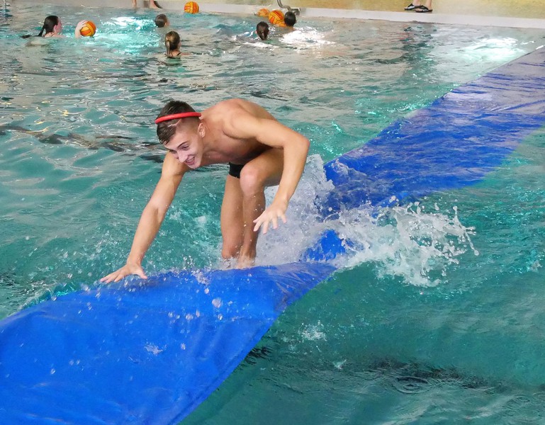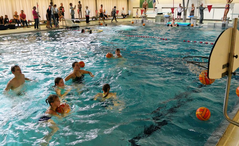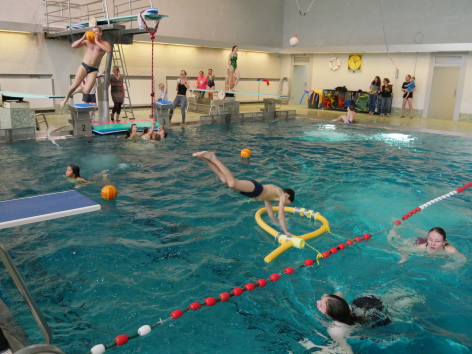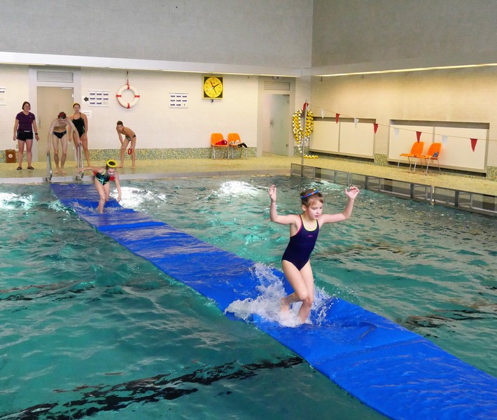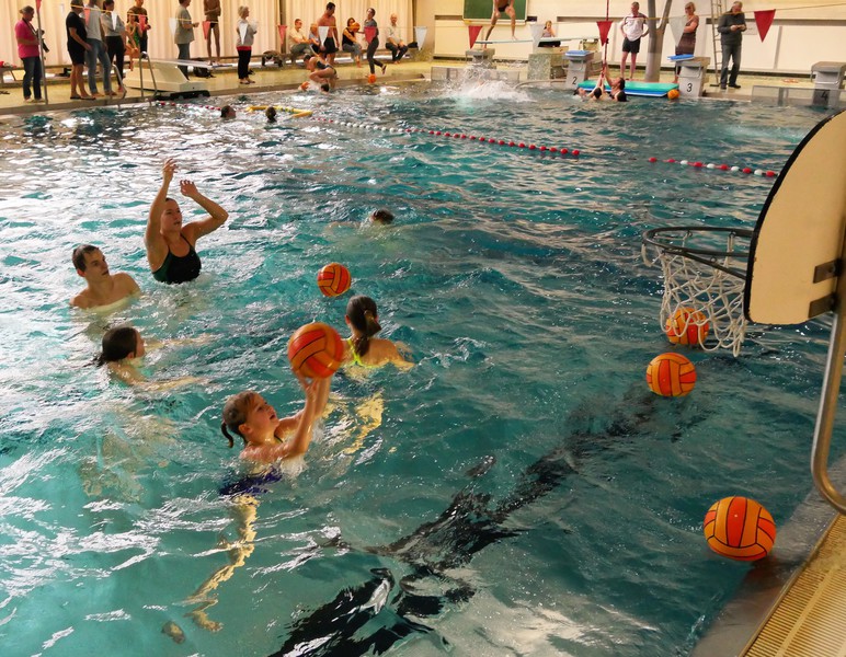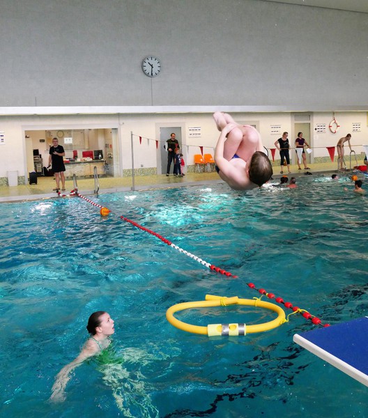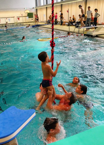 (jub, 02.12.2017) Das diesjährige Adventspringen überraschte mal wieder alle: die Aktiven, die mit den geforderten Übungen, von "über das Wasser Laufen", Korbwerfen im Wasser, Ballspringen, Seilklettern, Ball fangen bis hin zu Reifen-Eintauchen nicht gerechnet hatten, aber auch die mitmachenden Trainer, die überrascht waren von der Anstrengung des ausgedachten Parcours.