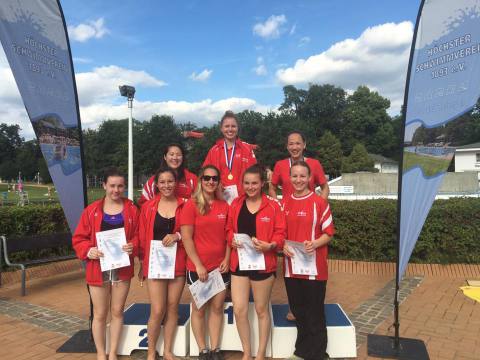 Bei den Damen startete ein weiterer "Neuling". Nele Luffy, die aus der Springerhochburg Aachen im letzten Herbst zur Physiotherapeuten-Ausbildung nach Mainz kam, absolvierte gleich mal den Dreikampf und belohnte sich mit den Bronzemedaillen im Turmwettbewerb und in der Kombination.
