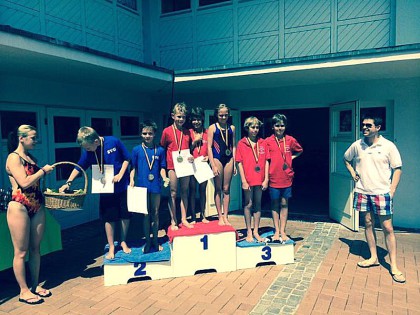(JUB) Matti Weidner und Jakob Batzer gewannen beim Rudi Altmann Cup im Frankfurter Stadionbad den Teamwettbewerb im Jahrgang 2001 u.j.. Jakob setzte dabei seinen 2 1/2 Salto vw perfekt ins Wasser und bekam dafür Wertungen bis 8! Auch Nikolas Foltys und Jannick Gimmer gewannen die Teamwertung Jahrgang 1996 und jünger und dies als zweitjüngstes Team überlegen über alle 3 Wertungsgruppen! Jannick holte dabei mit einem tollen 2 1/2 Delphinsalto und 54 Punkten die höchste Einzelwertung. Und auch Nikolas bekam bei 4 seiner 6 Einzelsprünge Wertungen über 40 Punkte!