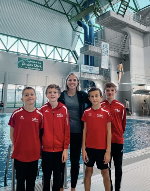 Endlich wieder ein "normaler" Wettkampf! Der Landesverband Baden-Württemberg hatte Mitte Oktober im Rahmen seiner mit dem LV Bayern in Freiburg ausgetragenen Landesmeisterschaften einen überregionalen Wettkampf über alle Höhen angeboten. Unsere Trainerin Mirja Stähler nutzte diese Chance und fuhr mit "ihren" Jungs gen Süden. Matteo Weiß, Rayan Obbad, Jakob Zinecker und David Curda trumpften auf den Freiburger Brettern und dem Turm groß auf und kehrten nach sehr guten Sprüngen mit 16 Medaillen nach Hause. Dabei gewannen Matteo (JG 09) und Rayan (Jg 10) jeweils von allen Höhen und Jakob (Jg 10) belegte jeweils hinter Rayan Platz 2 und David (Jg 10) vervollständigte das Podest jeweils auf Platz 3!
